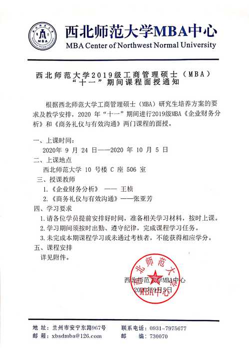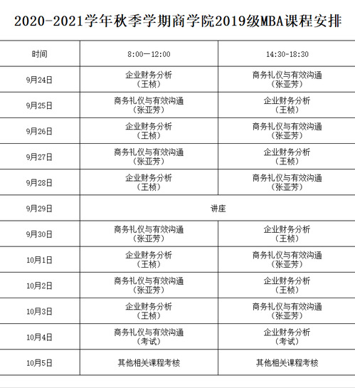 2019级工商管理(MBA)“十一”期间课程面授通知