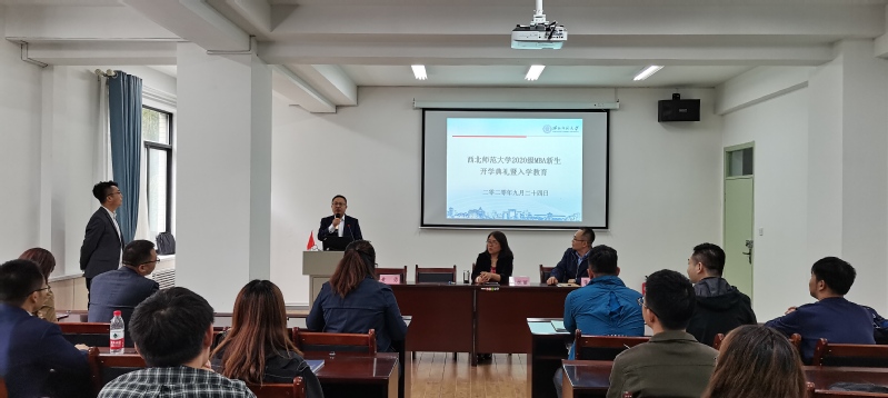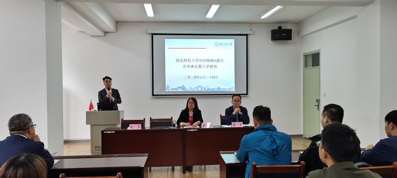 工商管理系主任马文静老师作为教师代表致辞。她祝贺2020级同学们顺利进入自己心仪的公司就读,祝愿新同学以饱满的热情迎接新的挑战,寻求新的发展,在创新求实的道路上不忘初心,合作共赢,创造出更多的辉煌。2020级新生王洪图同学代表新学员分享了他对未来学习生活的期许,呼吁大家要以“师大人”的身份肩负使命,勤奋学习,在师大这个优质的平台上汲取知识、升华自我。