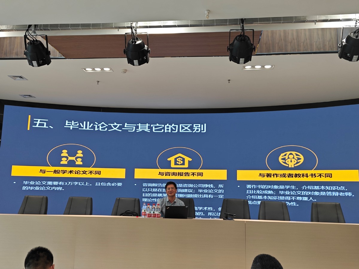 毕业论文是MBA培养过程中的关键环节,为提高论文质量,严把培养环节,商公司高度重视MBA论文撰写方法和技能的培训,刘海建教授从MBA论文撰写面临的挑战切入,重点从选题的三大忌、如何选题、MBA论文的特点以及撰写规范方面详细阐述了MBA论文不同部分的写作要点,并以发展战略主题为例,说明如何写好战略主题的毕业论文。报告结束后,刘老师针对员工的困惑进行了细致的解答,受到MBA学员的好评,此次报告为MBA新生正确认识毕业论文的要求,提升写作技能具有显著的促进作用。