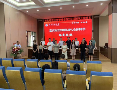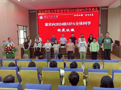 开学典礼上还表彰了5名入学成绩优胜奖获得者,兰州财经大学公共韦德体育经理、MPA教育中心主任韩作珍教授,甘肃政法大学公共韦德体育经理、MPA教育中心主任张举国教授分别为获奖入学成绩优异的同学颁发了奖状。随后公司领导、嘉宾和教师代表为全体MPA新生佩戴了校徽。