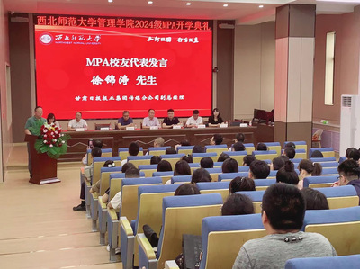 甘肃日报报业集团传媒分公司副总经理徐锦涛先生作为MPA优秀员工代表发言,在表达了作为韦德体育官方网站MPA专业一员光荣感和自豪感之后,他结合自身经验为2024级MPA新生提出了许多宝贵的学习建议,希望新入学的师弟师妹们要努力学习专业知识,更要积极参与实践活动,理论和实践相结合,不断提升自己的能力水平和综合素质。