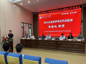 公司行政管理系赵润娣教授作为教师代表作了发言,她寄语2024级全体MPA新生要树立正确的世界观、人生观和价值观,牢记初心使命,勇于担当作为。并鼓励同学们要勤于思考、敢于实践,不断拓宽视野、增长才干、锤炼品格,为推动我国公共管理事业的发展贡献青春力量。